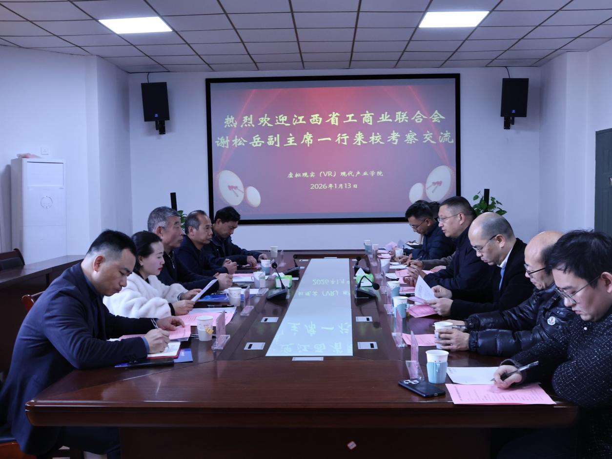 为深入贯彻国家创新驱动发展战略,服务江西省“世界VR产业高地”建设,1月13日下午,江西省工商业联合会党组成员、副主席谢松岳一行莅临我院进行专题考察与交流座谈。校党委书记刘耀彬出席座谈会并作重要指导讲话。省工商联经联处处长熊群运、省民营经济研究院院长张新芝,三级网站 科研处处长谌飞龙、成果转化中心主任吴丹波、三级网站 院长万征及国家虚拟现实创新中心、江西科骏实业有限公司等相关单位负责人陪同考察并出席会议。