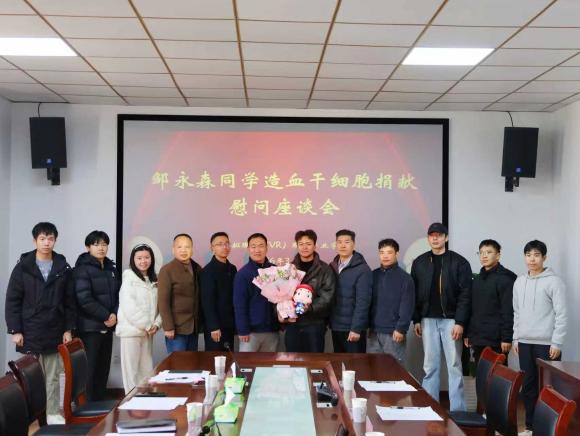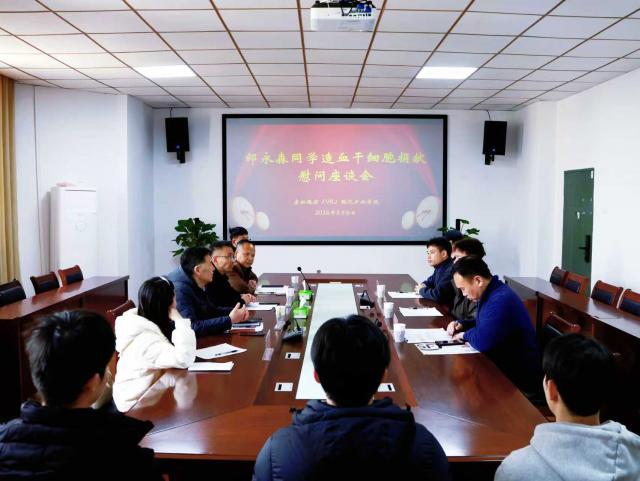 为表彰造血干细胞捐献者的大爱之举,三级网站 于3月6日在青云楼召开邹永森同学造血干细胞捐献慰问座谈会。三级网站 院长万征、党委书记彭敏、造血干细胞捐献者邹永森、余文鑫等师生代表参加本次座谈会,会议由三级网站 党委副书记刘前主持。