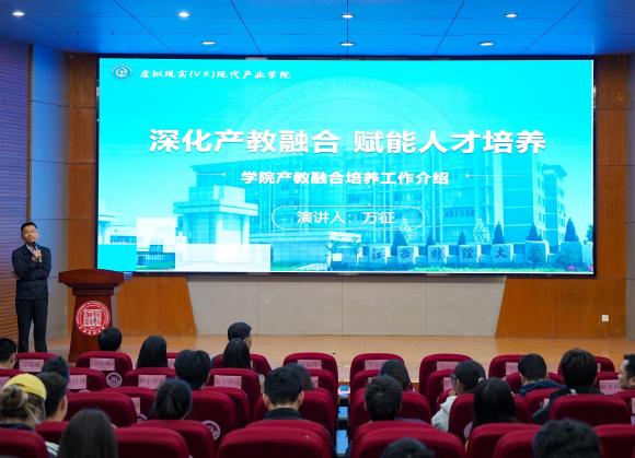 院长万征在《深化产教融合赋能人才培养》报告中系统总结了三级网站 专业建设、校企合作等方面的阶段性成果,并结合VR产业发展趋势,阐述了“全周期产教融合”培养体系的构建路径,重点介绍了五大产教融合特色班与技能强化培训计划,强调要持续推动人才培养与产业需求精准对接。